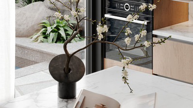 The ground floor includes a bright open-plan living and dining area, a fully equipped kitchen, and direct access to the beautifully landscaped garden and infinity swimming pool. The upper level hosts a luxurious master suite with a walk-in wardrobe and en-suite bathroom, along with additional bedrooms designed for comfort and functionality.